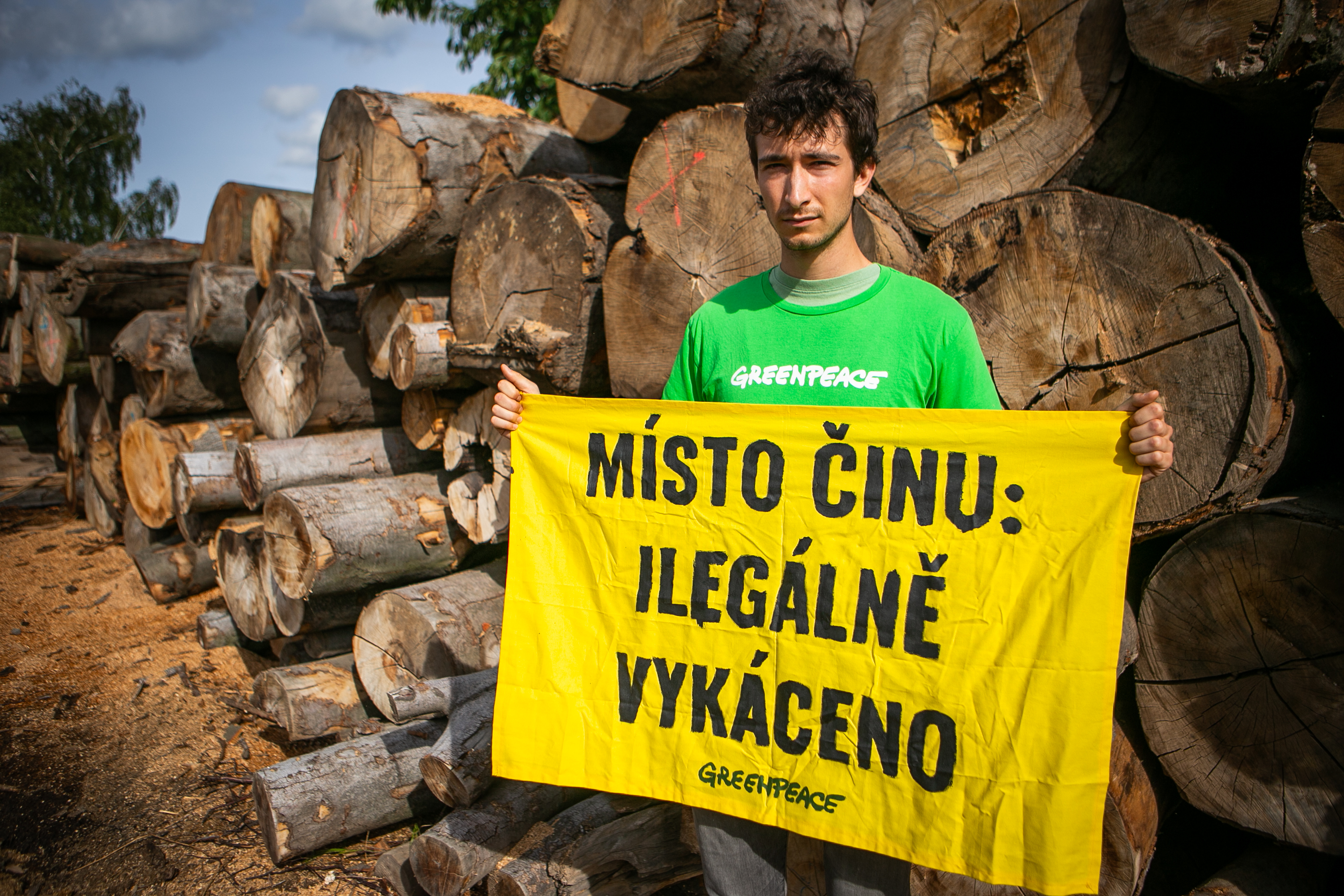 Home / greenpeace / Protest na pile v Chomutově - ilegální kácení Royal Pine - 19.9.2023 /