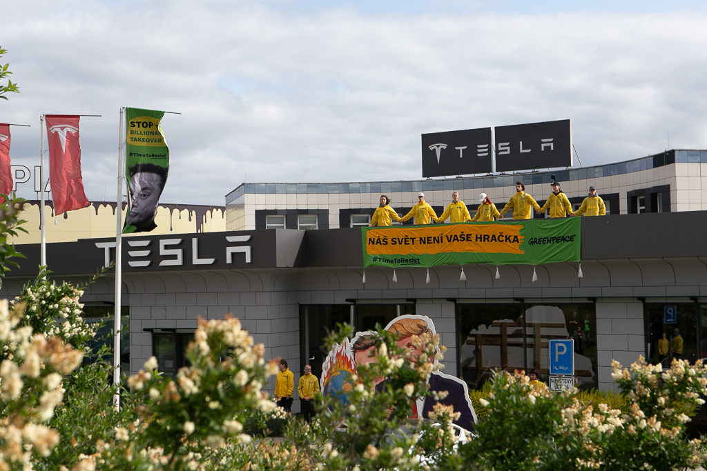 Protest showroom Tesla, Průhonice - 11.6.2025
