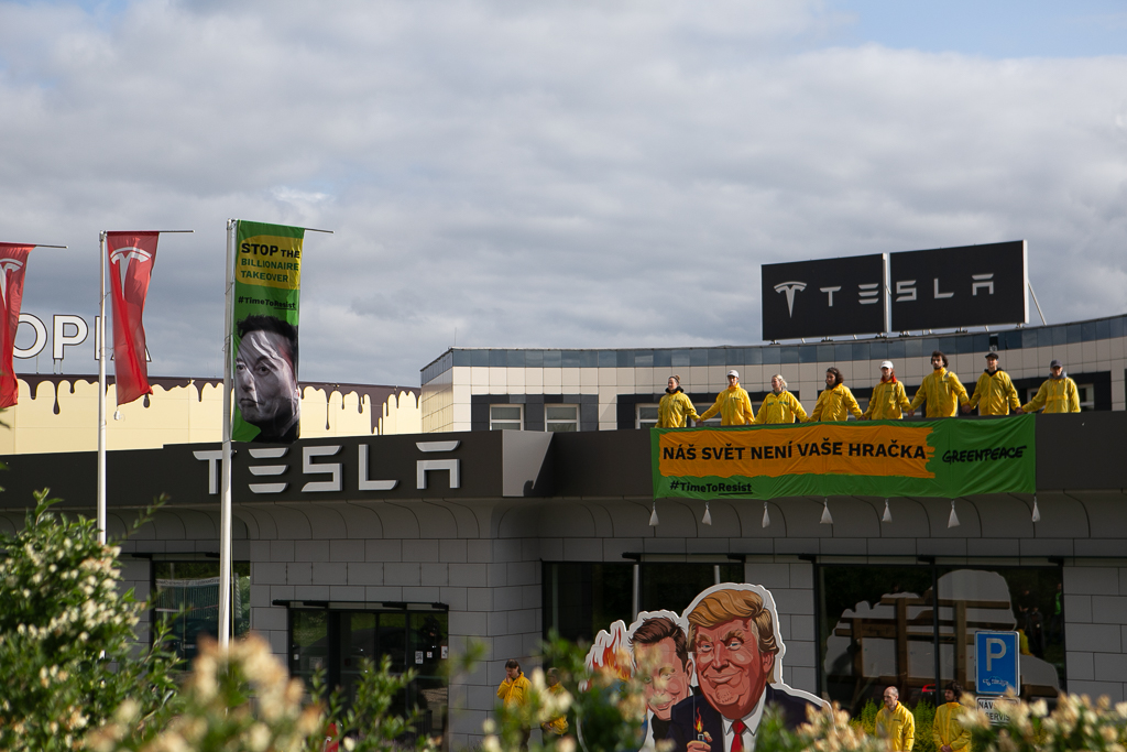 Protest showroom Tesla, Průhonice - 11.6.2025