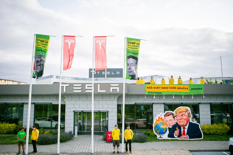 Protest showroom Tesla, Průhonice - 11.6.2025