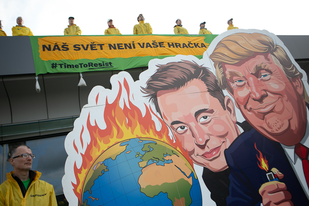 Protest showroom Tesla, Průhonice - 11.6.2025